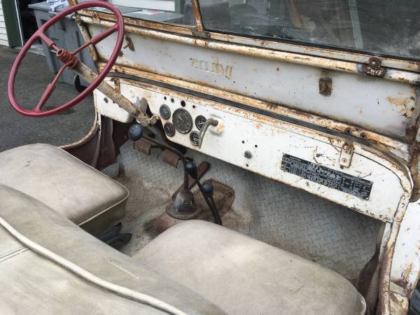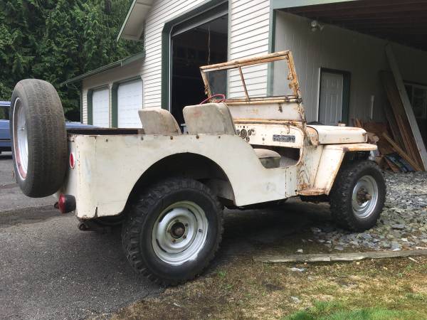“1948 Willys CJ2a Jeep. Was my dads jeep but he passed away recently. He had hopes to get it runnig and driving again as he used to drive it on his property 20 years ago. Needs work. Engine missing carb, distributor and starter. I don’t know where he put those, also I can’t seem to find the title for it so no title (unfortunately)…selling as parts.