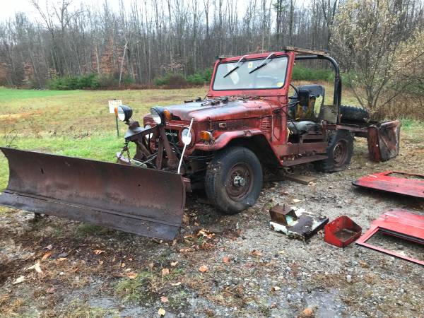 “1973 Toyota FJ40 Land Cruiser with plow for parts. Sold on Bill of sale only. Complete motor, trans, rear end. NO TEXT MESSAGES. If you are interested please call me.”