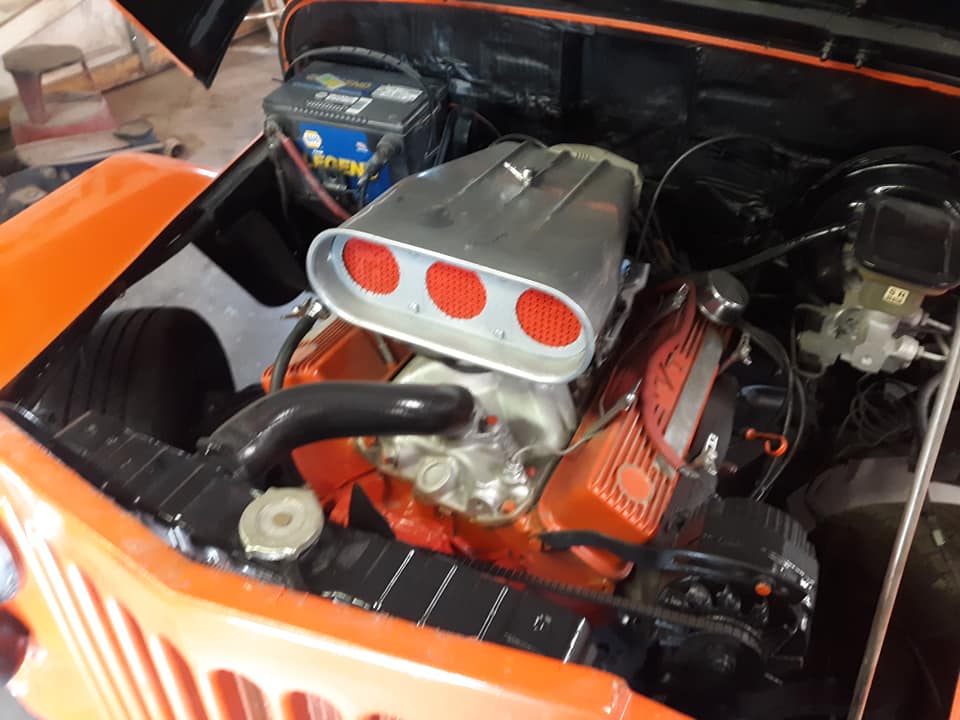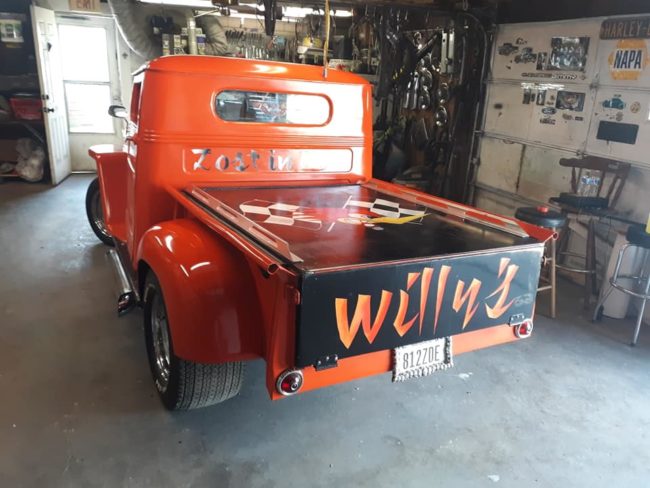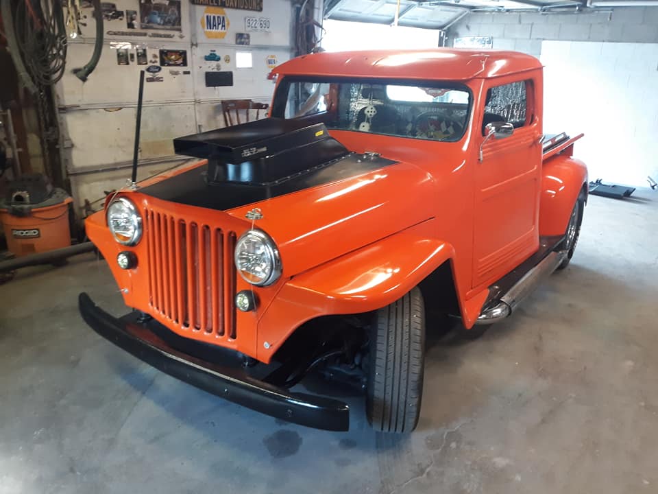“1949 jeep willys pickup on a s10 blazer frame. 355 with a 350 transmission. Runs and drives great new windshield and back glass. Would trust it anywhere. May trade for older truck or car”