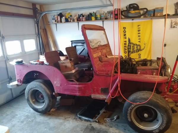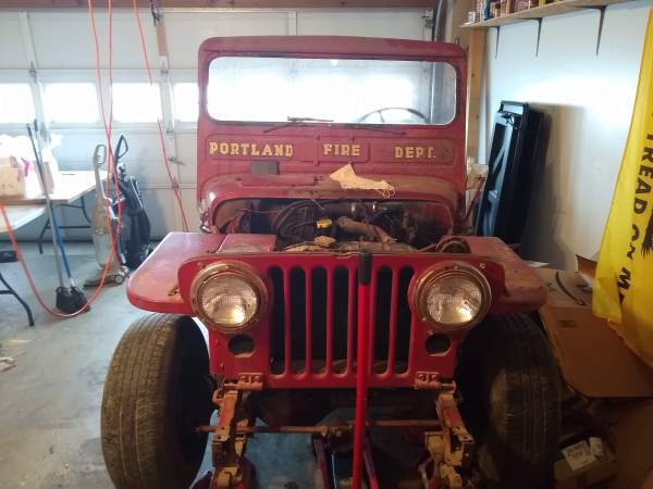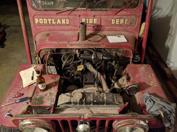 “‘Selling my dream project. Tough times require tough decisions. This is a 1952 M-38 Willys Jeep. 4WD miracle. RUNS AND DRIVES, doesn’t stop great. Brand new clutch. Comes with extras, and a $50 gift card to the Jeep parts store I never got to use! Serous inquiry only, please no tire-kickers. Almost all original. Started life as a Korean war jeep, then went on to be used for the fire dept in Portland. You can see the OD green under the red FD paint. Very cool and nostalgic. Email me with any questions you have, I’ll be happy to answer. Title in hand. $100 deposit. ”
