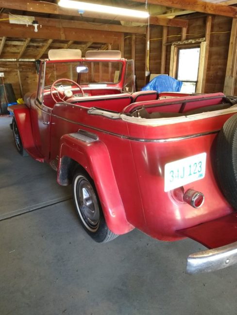 “1949 Willy’s Jeepster, 3 speed on the tree, runs good, licensed for SD. Car is in Emery SD.”