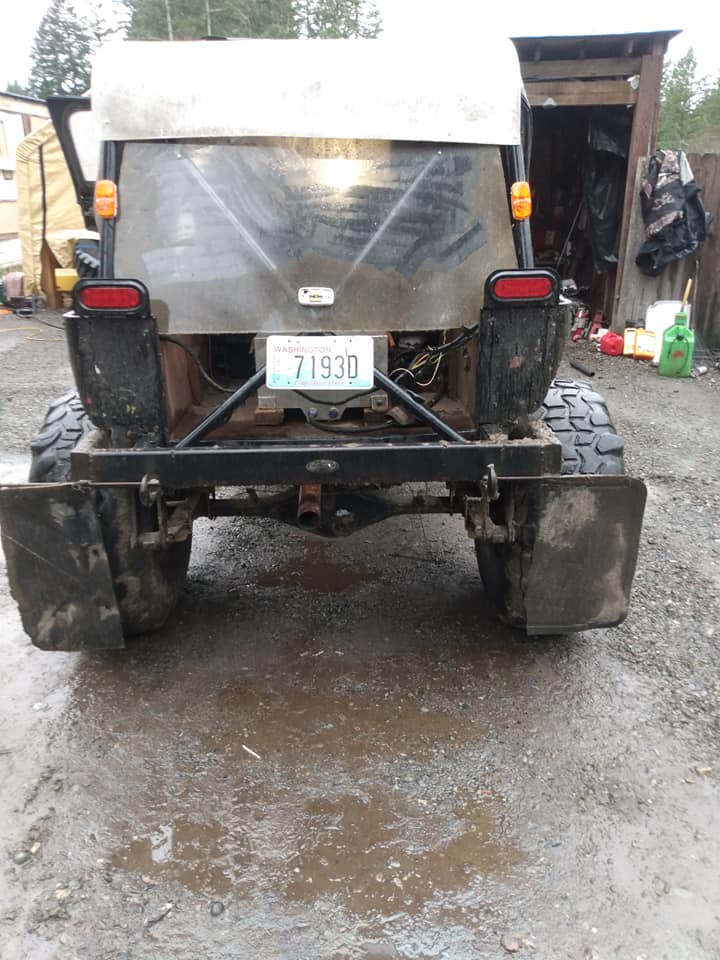 “1947 willys .its on a Toyota frame 20 r 4 speed toyota axles with 488s locked in rear. waggy springs in front 39.5 swampers on Beed locks 9000 warn .it’s a wheeler.most of wiring is hard wired but drives down the road pretty good needs shocks put back on it”