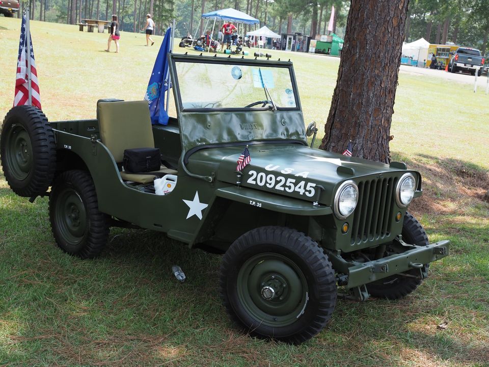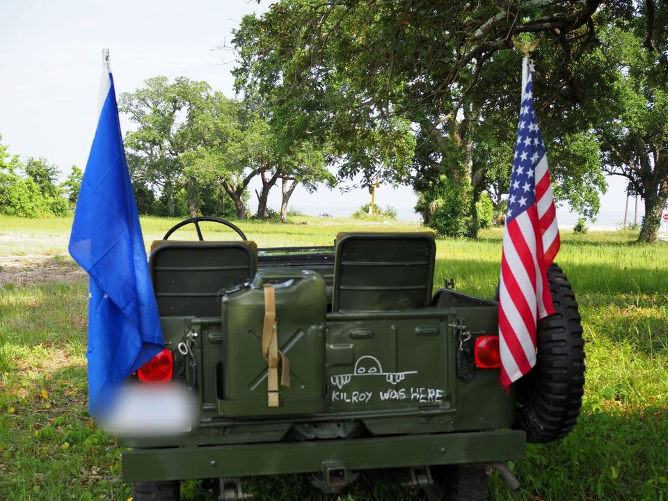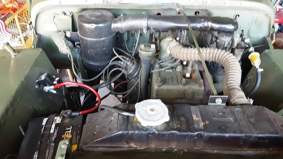 “This is a REAL Jeep; it is the SECOND model Jeep sold for/to civilians after WWII. It was rebuilt by the previous owner and has a 4-cylinder, Go-Devil engine, 4-leaf suspension, 3-speed manual transmission, transfer case shifter, and range shifter, military-style tires (in excellent condition), 5-gallon external/spare fuel can (w/spout), and a canvas “summer top” (no sides) w/frame (not pictured). Also has an A-frame tow-bar which bolts to the front bumper. Maximum (street) speed is 45 MPH. Four wheel drive works and has front-axle locking hubs. It is a definite attention-getter, and crowd-pleaser. Would make anyone’s Christmas the BEST EVER! Price is FIRM”