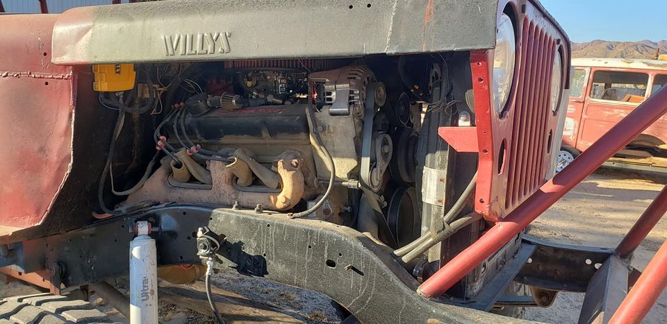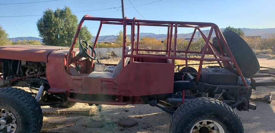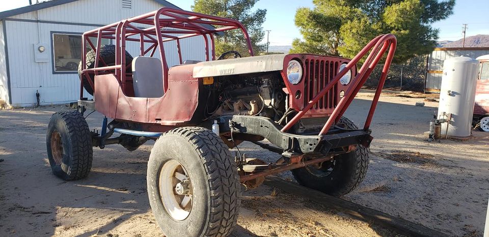 “1946 willys rockcrawler siting on chevy frame and running gear Dana 44 spooled 5:38s 14 bolt spooled.5:38s/disc brakes conversion All new calipers and brake lines and pads Chevy 350 New edelbrock intake and off road carb 100 amp alternator Tubro 400 trans/208 transfer case 37 16.5 miltary tires Comes with a extra engine This has been a work in progress for years. I have the pink and bage plates for 46 willys.”
