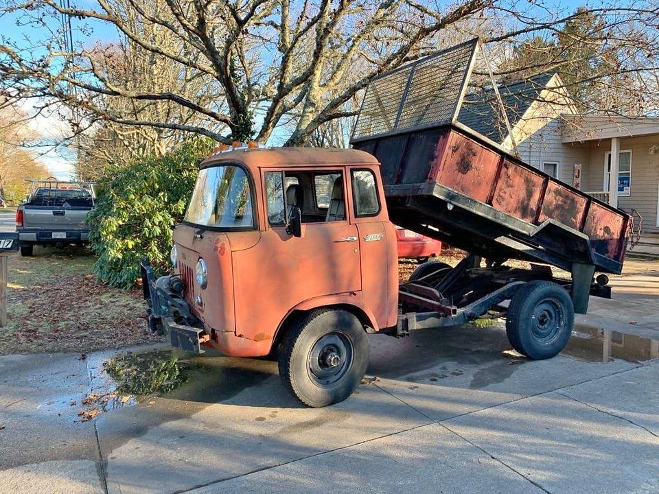 “1956 Willys jeep fc170 runs and drives. dump works. needs some work. make and offer. good title.”