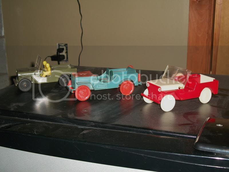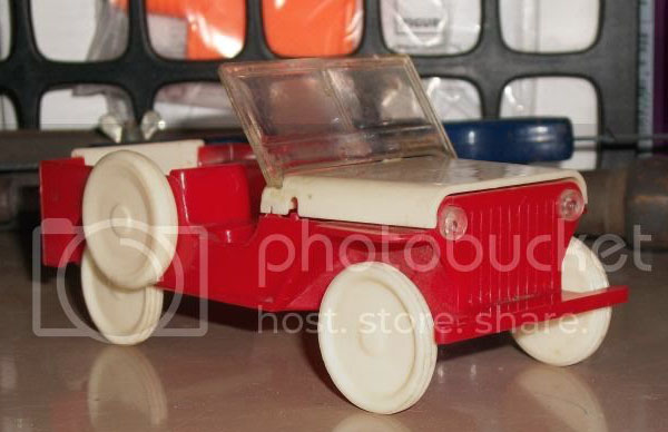 I spotted this plastic jeep on a buy-it-now eBay ad, but didn’t recognize it. It looked unusual due to the spare tire placement (CJ-2-like), so I made an offer and scored it. After some research, I learned it is pretty unique.