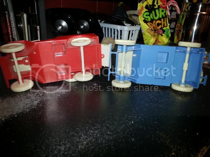 Mine is all one color (I have yet to find a comparable one on the internet), but lacks the windshield. It seems like it got too hot (see the front bumper), so it’s hardly a perfect specimen. There are no markings on it, other than “39” is printed on the box; I’m unclear what that signifies (no company name on the box either).