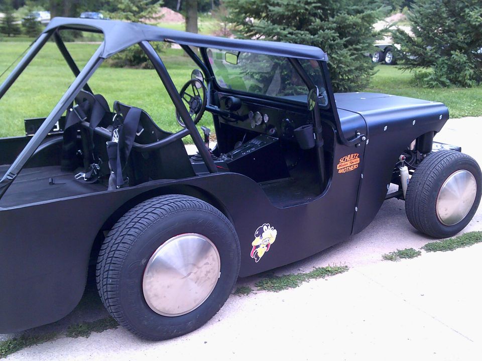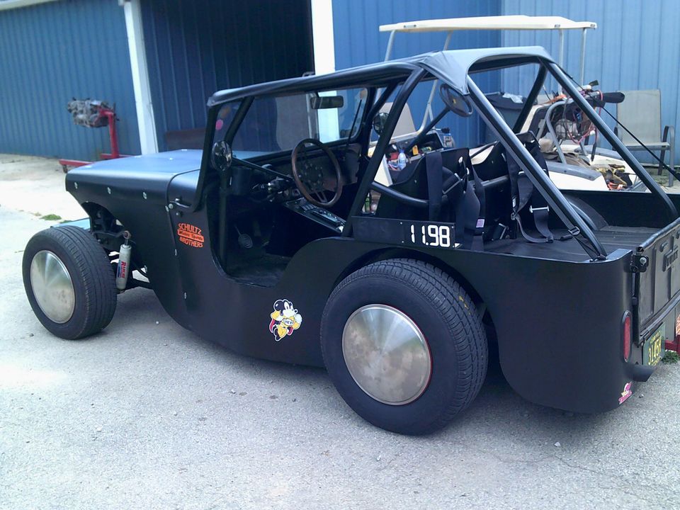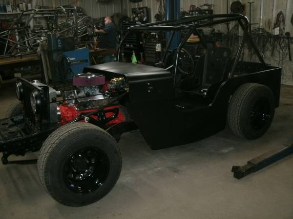 “this is a 1946 willys lower 2wd 450 hp 355 chevy with a 350 auto it has sawy bar on front and a anti roll in the back so it runs like a big go cart it is kind of a rat rod”
