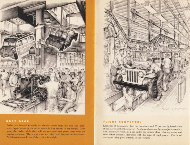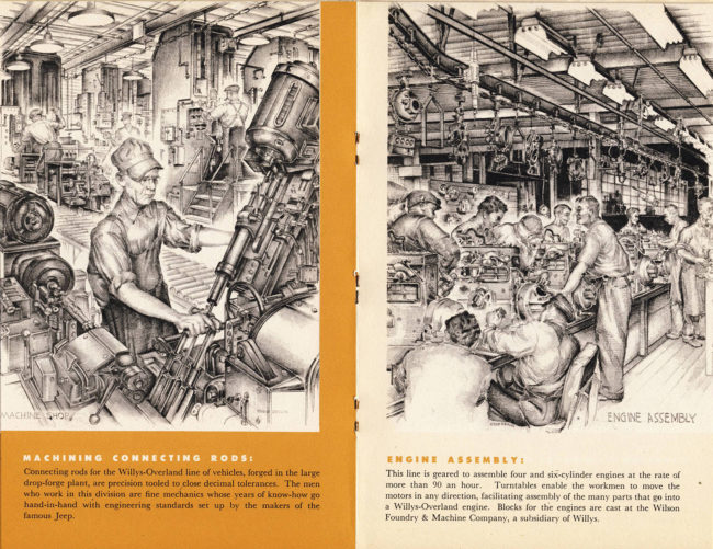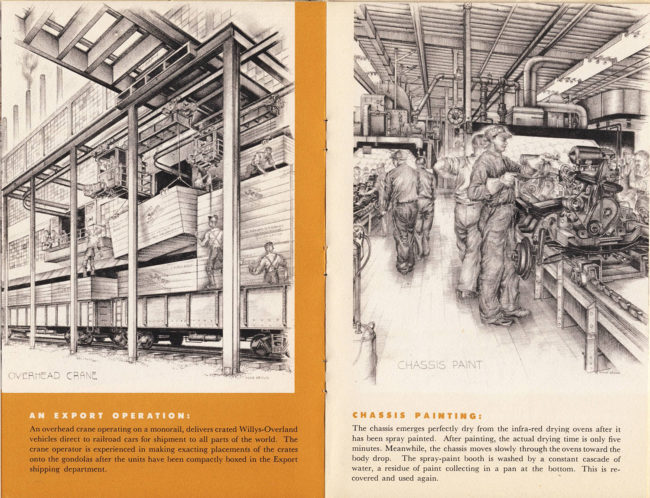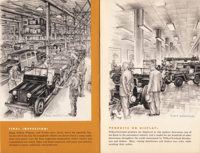 This great booklet, of which I also have a copy, was a handout given at the end of factory tours at The Overland. Usual recipients I’ve heard of were new or prospective dealers to get the Willys story out into the sales market quickly. Remember, the Willys Dealership numbers were rapidly expanding during these Post War years. Love those pencil illustrations, in this one and many others. Frequently Willys News issues had them especially around Christmas.