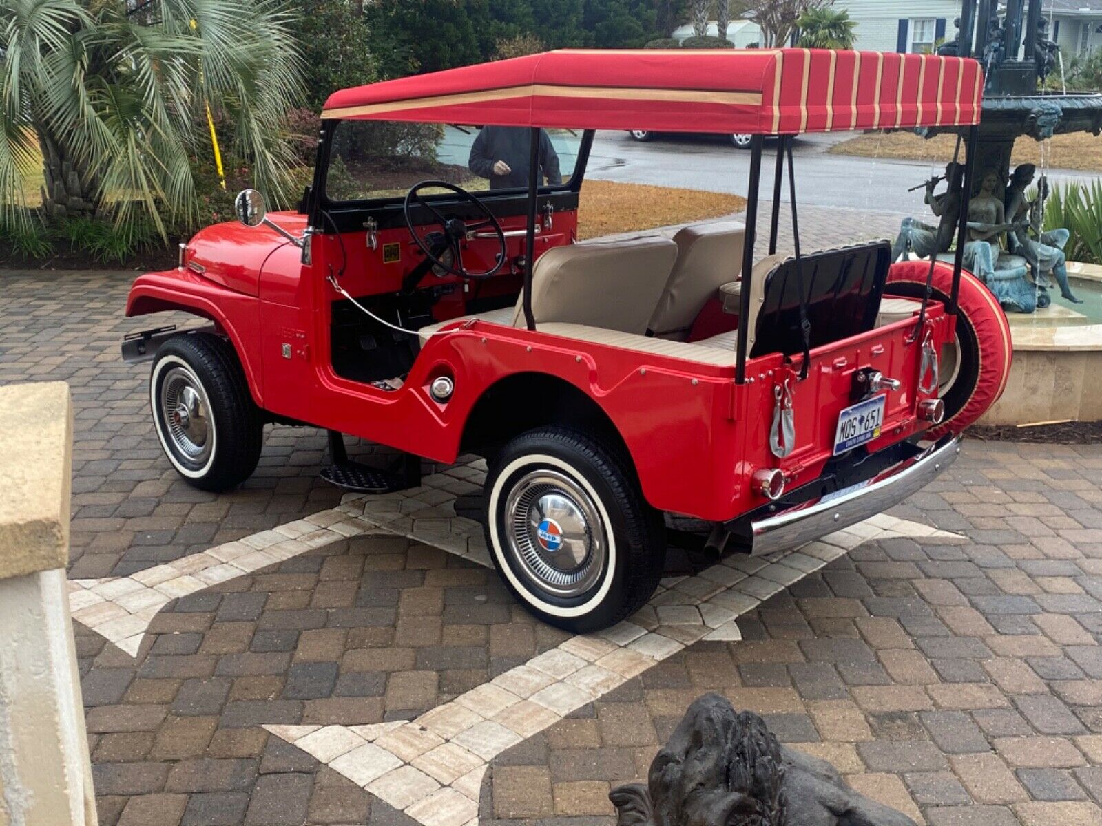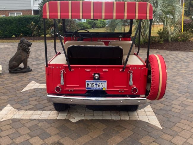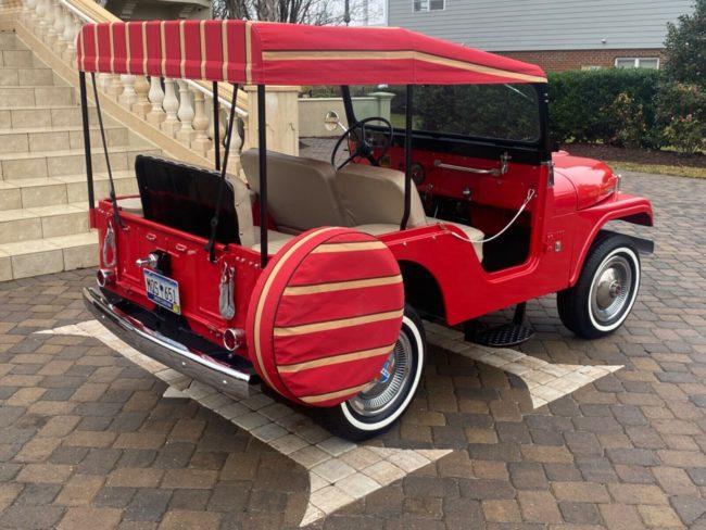 Good comments above. Original correct tail lights would be chrome also and very hard to find. Probably have to buy an NOS regular set (which we have) and have them chromed. Shifter was probably swapped . Don’t know about the Tux, but T18 4 sp was an option for the V6 also through 71. Terry’s right, hubcaps should be the red and orange matching the V6 badge and Kaiser Jeep. I see now after reading the listing the seats are tan not white. We can pick this to death correctly, but it is a very nice restomod for someone in FL to drive between trailer parks. And considering the price of Side-by-sides today, this price is not unreasonable for what you get. But what remains is what you could have for the same money.