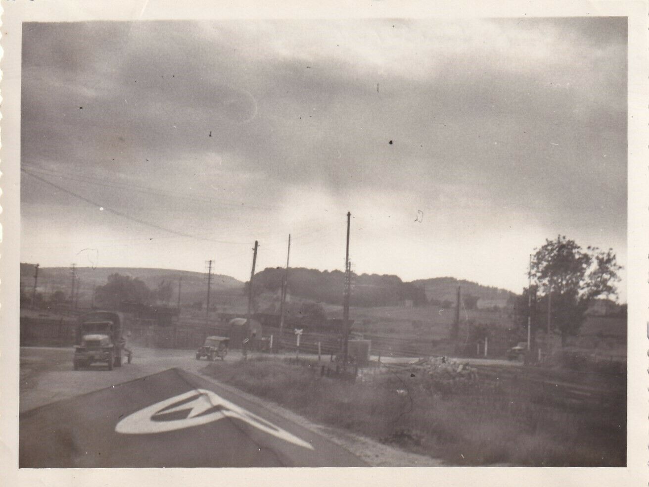 5. Photo JEEP CONVOY Entering SAARBRUCKEN 1945 Germany