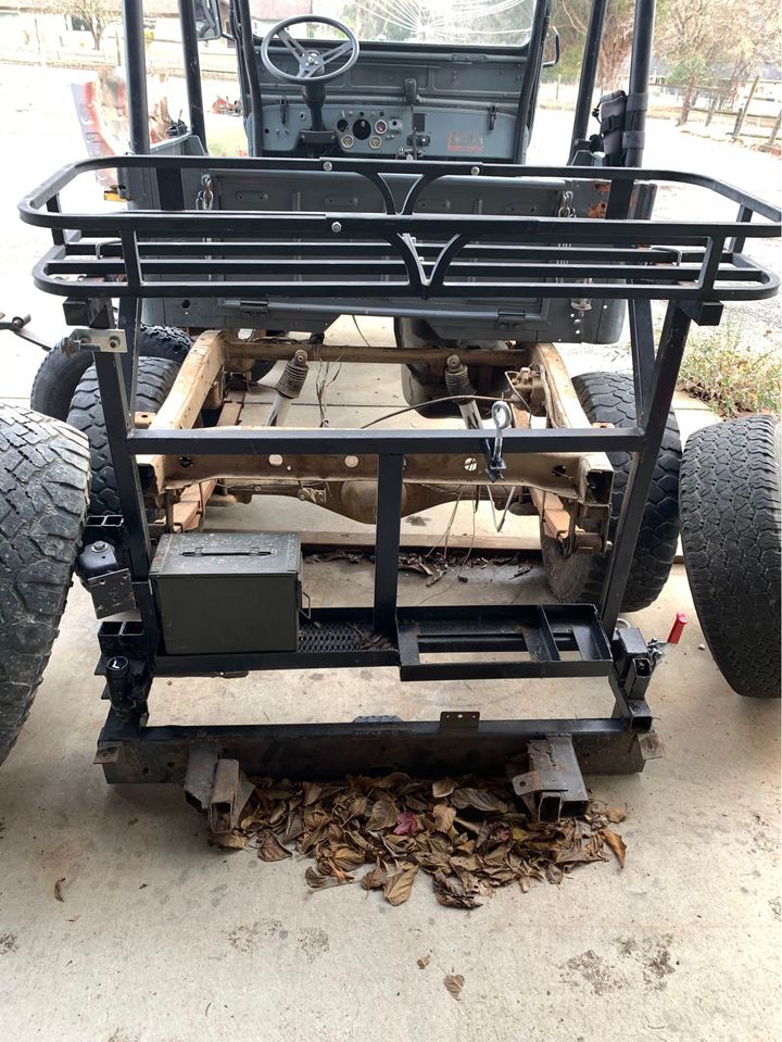“I have a 47 Willys project that I was going to build. Things have changed and now I don’t have time to deal with it. It is a complete body with title. I have a complete soft top for it also. Has a cj3b windshield so it’s one solid piece. It is cracked. It is sitting on a 83 Toyota pickup frame with front and rear Toyota axles. I have 4.88 gears and install kits with solid spacer for the diffs and misc driveshaft parts. I also have a brand new high steer kit for it also with power steering setup. It will also come with 35” rollers, 84 22r, 83 complete harness with steering wheel and gauge cluster, 2 g series transmissions ( 1 top shift and 1 forward shift). It will also come with a forward shift tcase and w56 5 speed and tcase. Have bucket seats with 4 point harnesses and a newer back seat with harness.”