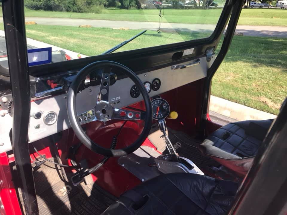 “1979 CJ5 stretched Jeep hot rod. Many newer parts and upgrades. Straight axel, R&P steering, front disc rear drum( rear brakes and MC are new). Ford 9” rear, 5:13 w/ spool. 1964 327 , steel crank, shotpeen rods, 12:1 pistons. Corvette angle plug closed chamber heads. Crane full roller cam/valvetrain. With stud girdles. Victor jr intake and Proform 750 DP carb. MSD ignition and Hy- Fire coil. Hughes PG trans with deep pan, transbrake, 1:90 first gear. Ballistic blanket. 10 gallon fuel cell. Passed Texas state inspection. Clear title. Rear tires are newer Mickey Thompson SR drag radials. MT Sportsman’s on front. Fiberglass front fenders and inner liners”