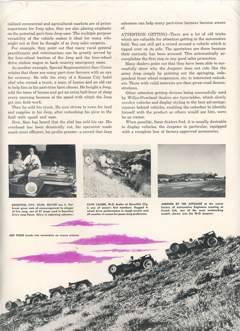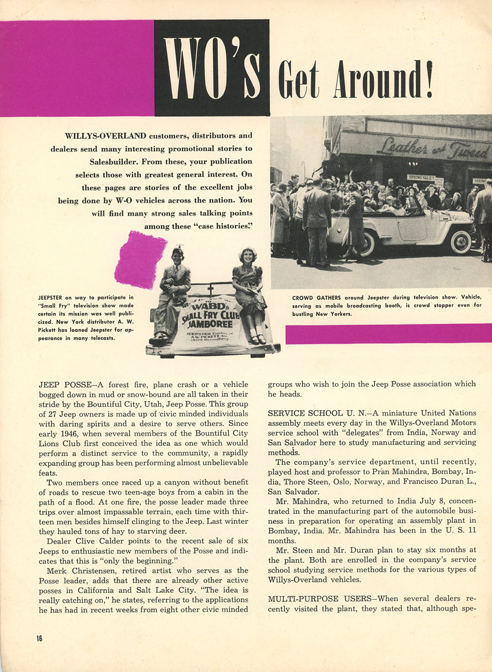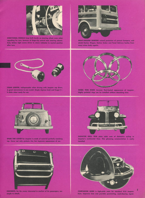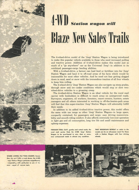 Originally Posted November 8, 2020: This August 1949, Volume 1, No. 6, Salesbuilder shows off the new 4WD wagon. There’s a report about a Forest exhibition in May of 1949 near Eagle River, Wisconsin, where the fire jeeps showed their ability to get quickly to fires. The Jeepster’s new inline 6 gets a nod, as does the Bountiful Jeep Posse.