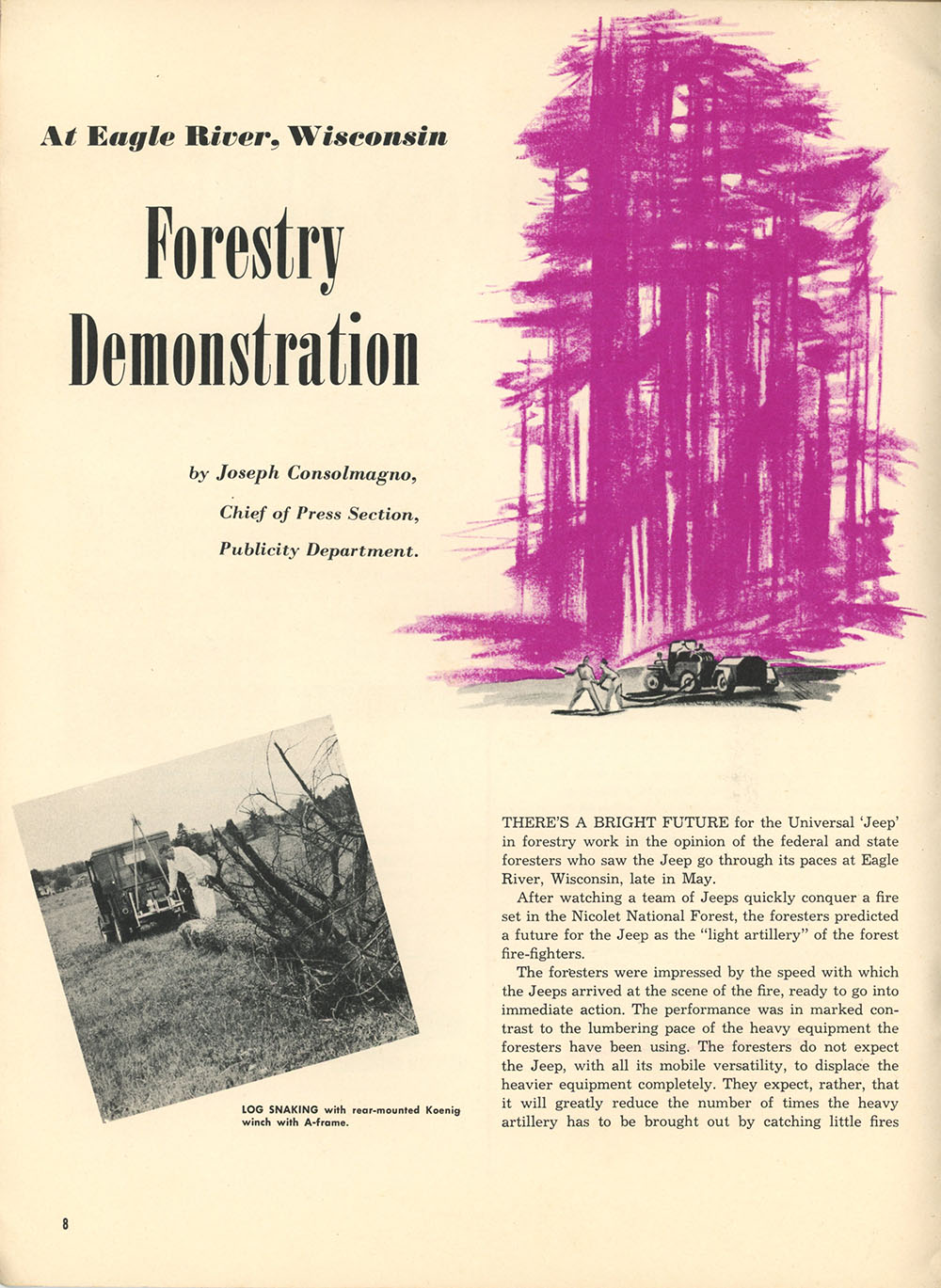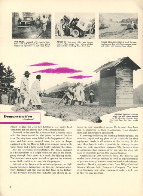 The forestry demo story has a lot of Newgren fire plow mentions, and a great back cover shot. There is also mention of the pickup unit equipped with a pump/pressure tank, Monroe lift and Newgren fire plow. Nice story.