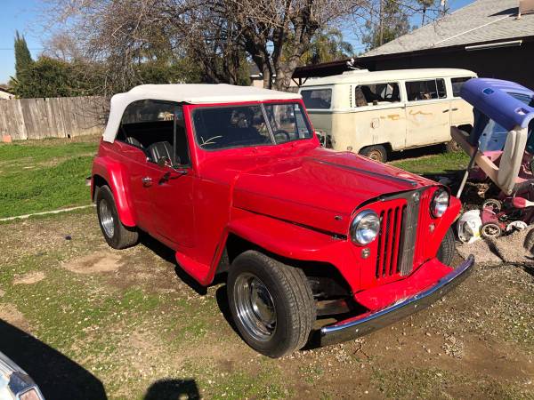 “1950,s willys Jeep motor was sent out and rebuilt its a project and I have no time for it. has lot of new parts and lot of old parts lots of money invested just trying to get some back has spare frame spare axles mental tub and multiple parts has 12 volt wiring harness new in box if you are serious about we can set up time to take a look $5500 or best offer”