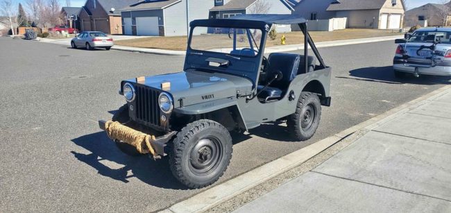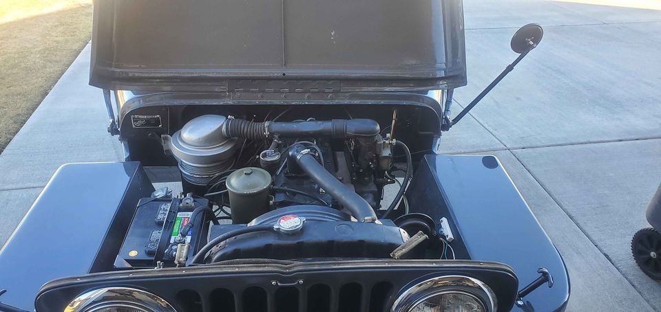 “49 willys flatfender cj-3a Original go-devil L134 motor Factory 3 speed manual Warn overdrive Digital ignition Gm 1 wire alt (12V) Gear reduction starter 11″ brakes all around Power-loc rear lsd Runs and drives great Comes with another set of 1 piece 15″ rims, a spare two piece 16″ rim, and parts”
