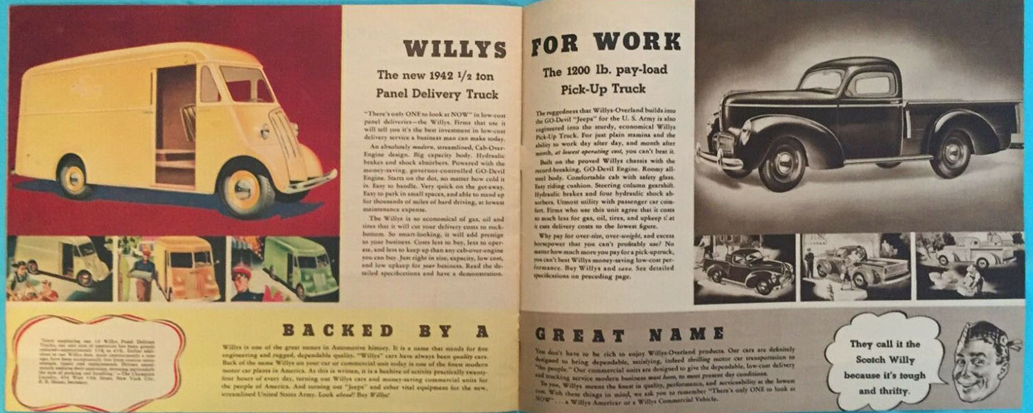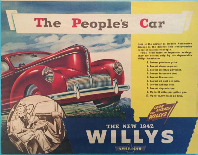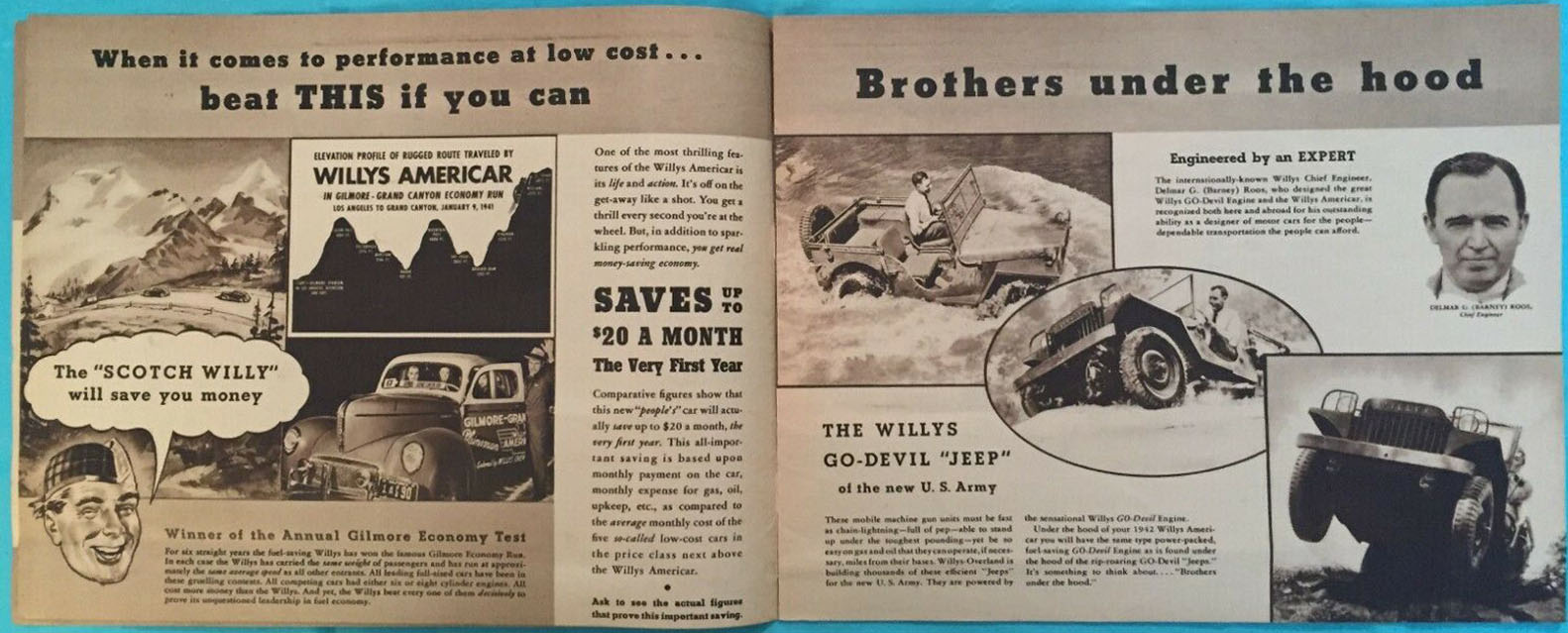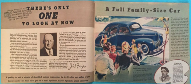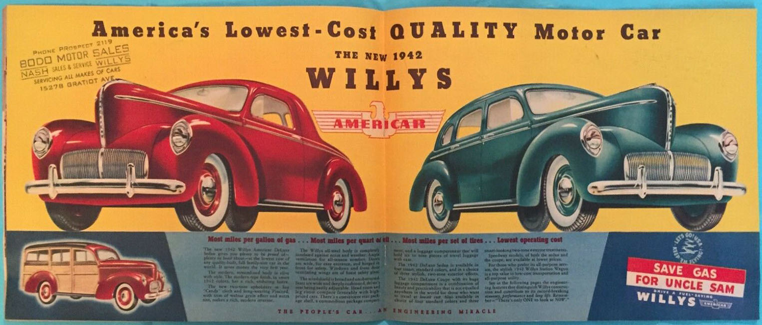This 1942 Americar Brochure includes a page that shows the Willys MA. I dropped out of the bidding at $30. I’ll keep my eye open for a cheaper version of this brochure.