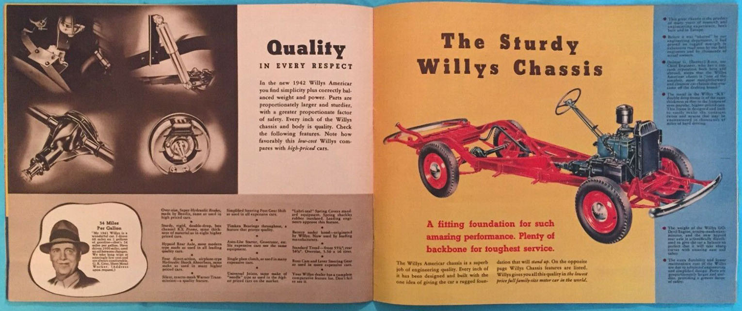 The following images might show the entire brochure in the correct order. Note the page showing the Americar’s “Willys Chassis” … anyone know how similar this was in size to the wagon chassis?