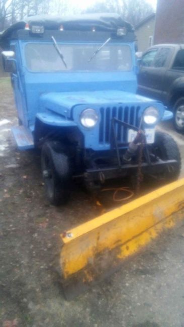 “Willys cj2a or 3a repowered with buick dauntless v6. Runs and drives. 4×4 works. Dualamatic locking hubs. Heated cab. Plow works. Be a good build project. Have extra parts available.”
