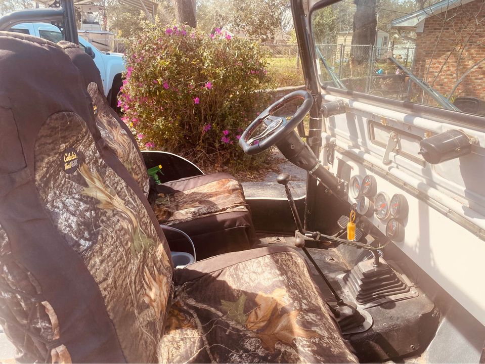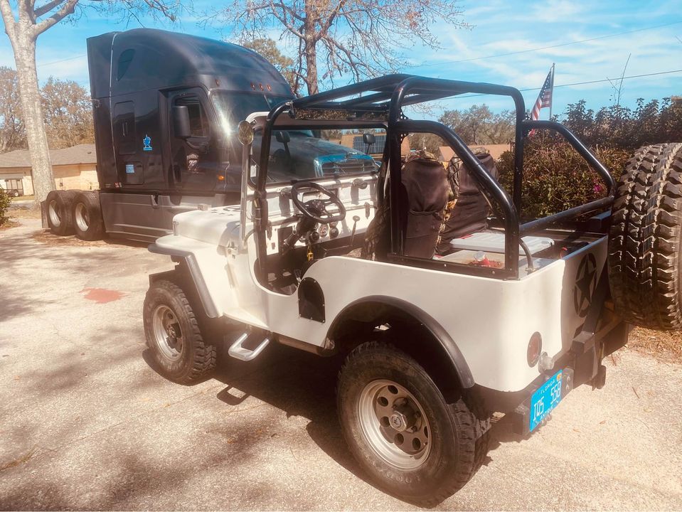 “This jeep has been with me over 12 yrs it is titled and platted in fl it has a built v-6 a 4 speed manual w- creeper gear it has it all from aluminum radiator lockers in rear full roll cage fuel cell remote battery with power disconnect”