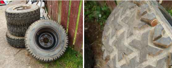 TREAD CONSISTENCY: The consistency of the Desert Dog tread appears to have varied considerably over the years. Some tires appeared to have tighter spaces, wider zig-zags, and longer “Vs” than other tires (even among the 8 dogs I have, the tread varies). I haven’t found any method for identifying why/when the tread varied so widely over the years. Maybe some dealerships customized their molds?