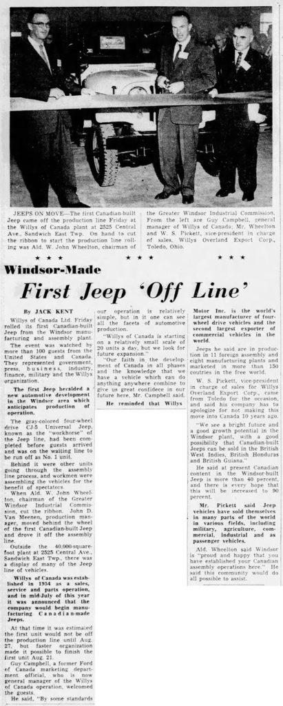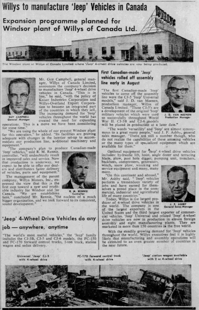 This first article appeared August 22, 1959, in the Windsor Star and shows the actual first CJ-5.