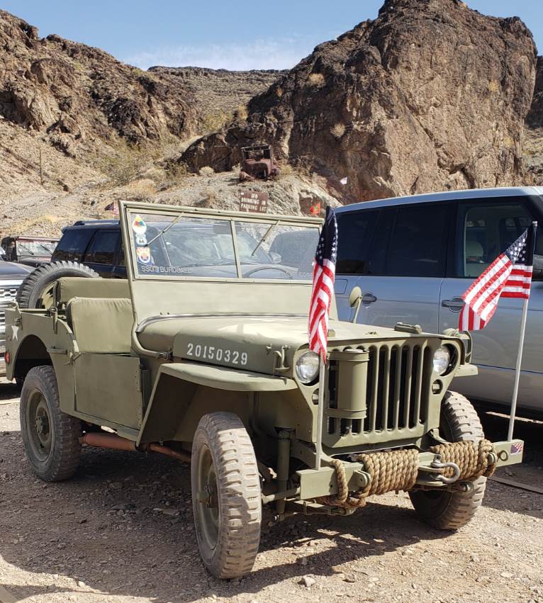 Both my jeeps made it to Desert Bar. My friend David drove the tan ’44 MB, displaying new custom hood numbers (my newest granddaughter was born in 2020 on 08/11):
