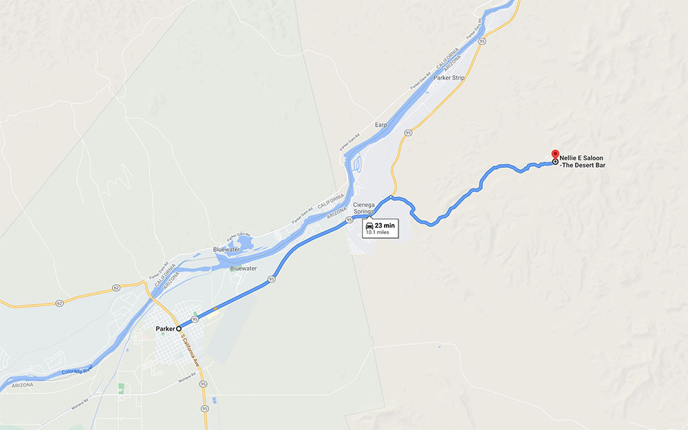 The drive to Desert Bar in a remote part of Parker, Arizona.