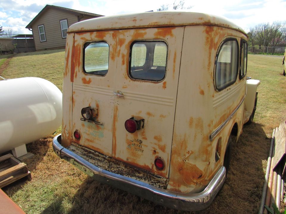 “Up for consideration is a 1962 four wheel drive Willys Jeep Traveller. Original Texas Border Patrol Jeep with sea foam green and black paint under the yellow repaint. Original 230 inline 6 has been replaced with a later chevrolet 250 inline 6. Original, unrestored traveller needing complete restoration but a very solid platform to start with.”