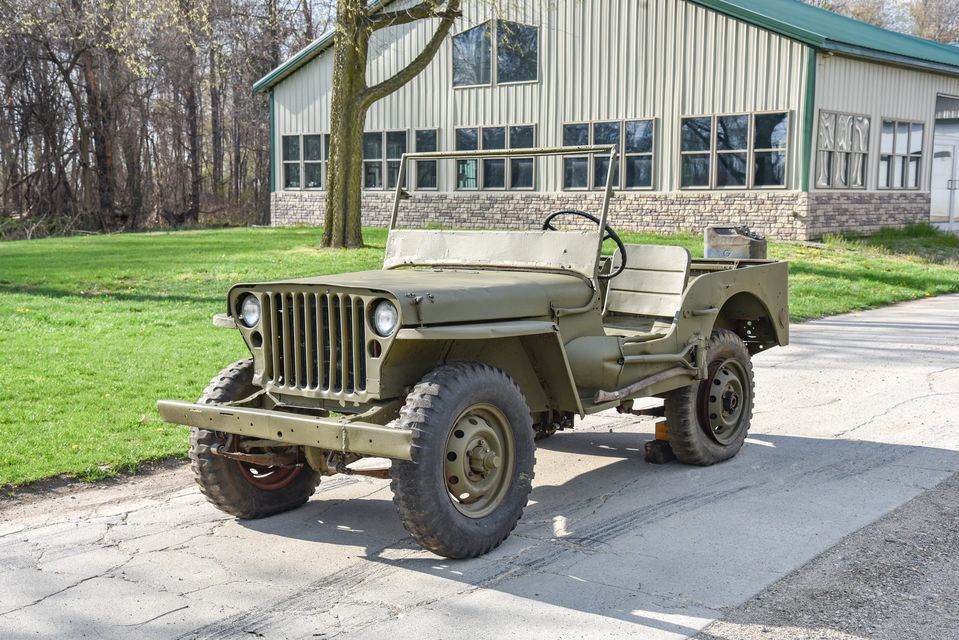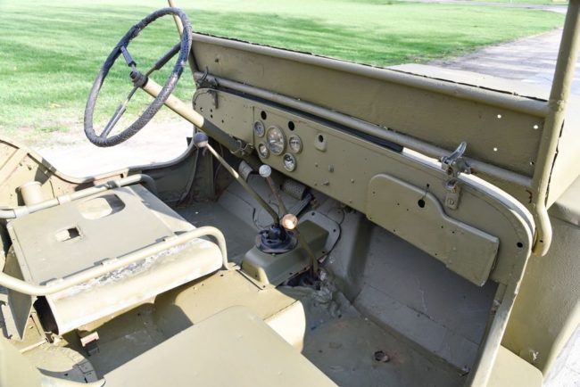 Paperwork shows it came from Kettering, Ohio in 1980, then went to Indianapolis, IN. In 1994 it was sold at public auction. Has the true GPW frame with square radiator crossmember. The serial number on the title is GPW10723 which puts it at early 1942, but the body number is 208184 which is post 1943. Original drivetrain is missing and both axles are simply housings – no shafts or pinions. Body and frame have their fair share of patches as shown in the photos.”
