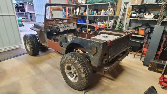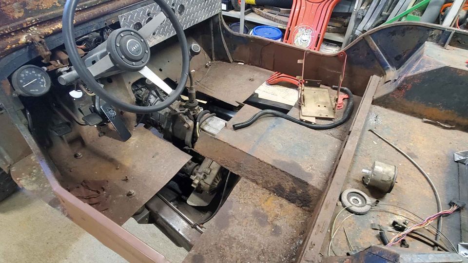 “Possibly trade for side by side , four wheeler or ford truck. Truck must run but body can be a bad. Late 40s cj2a body stretched 10 3/4 inches and mounted to a 1990 yj chassis. Floors need to be completed. Was planning a v8 and 1 ton swap . Does currently run and drive but not sure how good the motor is . Has a 2.5 4 cylinder, ax15 , 231 t case , dana 30 front and 35 rear .not sure of gearing or if they match. All stock yj . Not sure of overall condition of the drive train because i was going to swap it all . Cool project . All controls are already figured out . Pickup in ft mitchell. I have driven it around the property a good bit . No title . Serial number “vin plate” is missing”