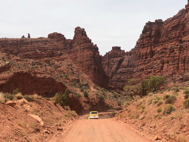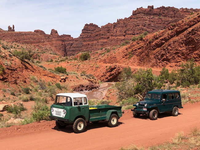 that gives me the WILLYS !! — last time i went through MOAB , 1971 ? i stopped for a 6 pack and a pack o smokes and kept moving south – camped at the NEWSPAPER ROCK STATE ? MONUMENT – i slept right under the petroglyph wall and had HORRIBLE NIGHTMARES !! – this white boy had offended the NATIVE SPIRITS ? – oh well , i made a beeline east for the SAN JUAN MTS , COLORADO and drowned myself in fresh COORS BANQUET BEER , later drove east to GOLDEN COLORADO , and went to the COORS TASTING ROOM for even fresher COORS !! .. I did see the fc-170 ” we drive you look ” tour rigs in OURAY , but being a poor hippie , i didnt take the tour .. my willys jeeps were home on the coast , they dont go out of state , or even COUNTY !!