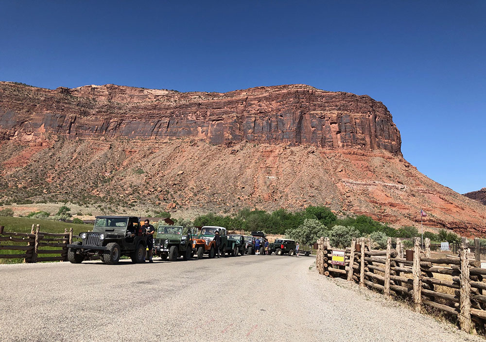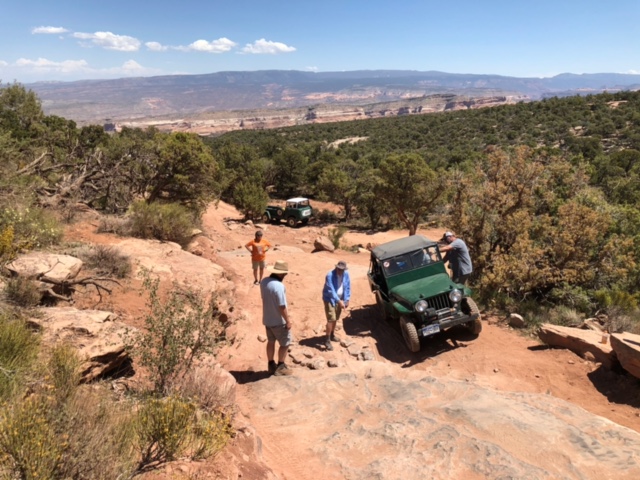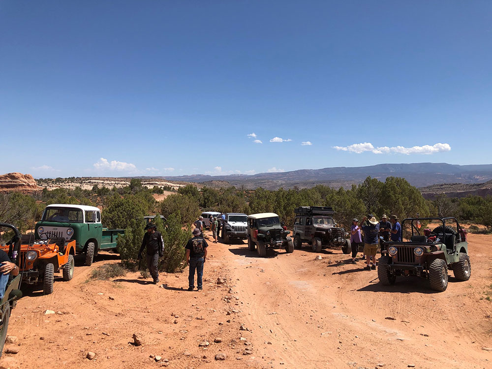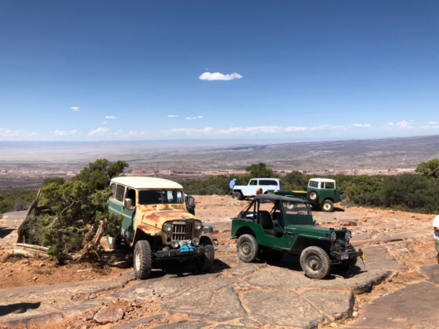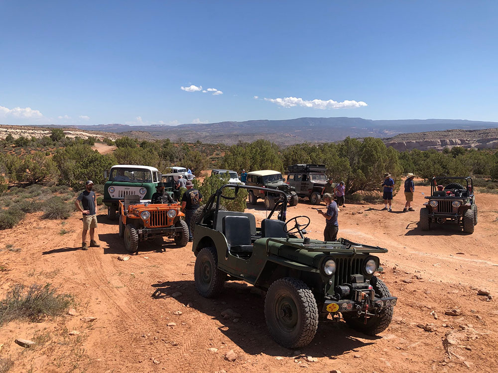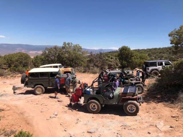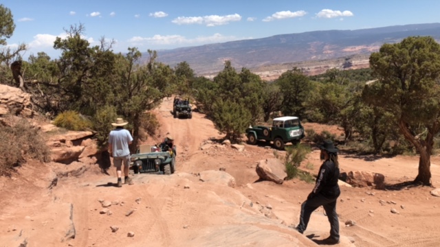 Steve wrote, “On Sunday, Casey led a group of 12 vintage Jeeps and four modern iron up the Top Of The World trail. Two Jeeps had a mechanical breakdown. All the Willys with factory Jeep engines made it to the top without a problem. Breakdowns included a radiator vs. fan, and a broken steering rag joint. No one was left stranded. The group took care of each other and no one was left behind.”\