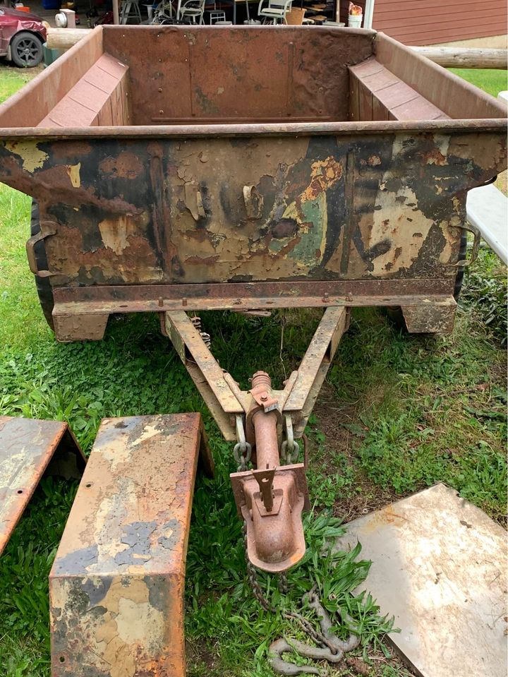 “Military ammo trailer Vietnam era. Has a rotating tongue which helps out when you are wheeling. I have had this trailer for over 25 years. At one time I was going to paint it to match my jeep that is why the fenders are off, never painted and never put them back on. This pulled great behind my Jeep. No title never had one, I bought it off a add tacked to the wall in Woodys 4×4 in Vancouver.”