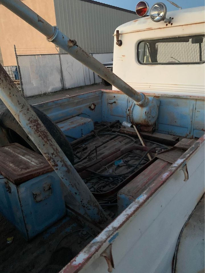 “1948 Willys tow truck. This has a 228 Studebaker engine that is estimated to be a 1951. Needs restoration. The engine will turn over. Just don’t have time for it.”