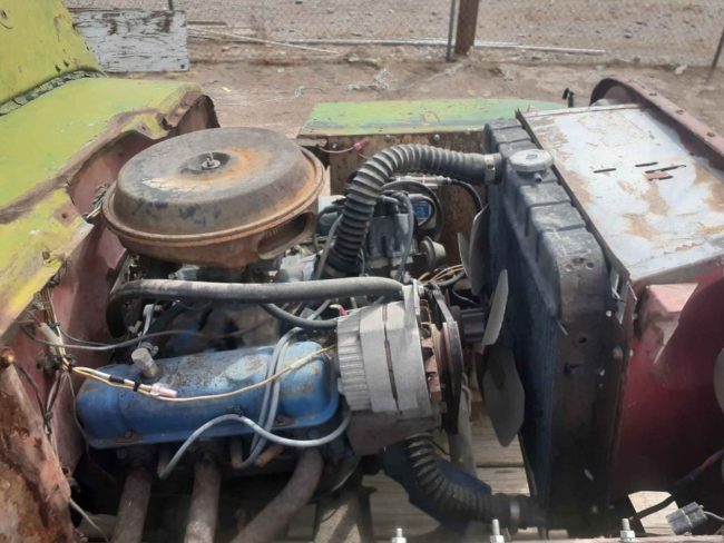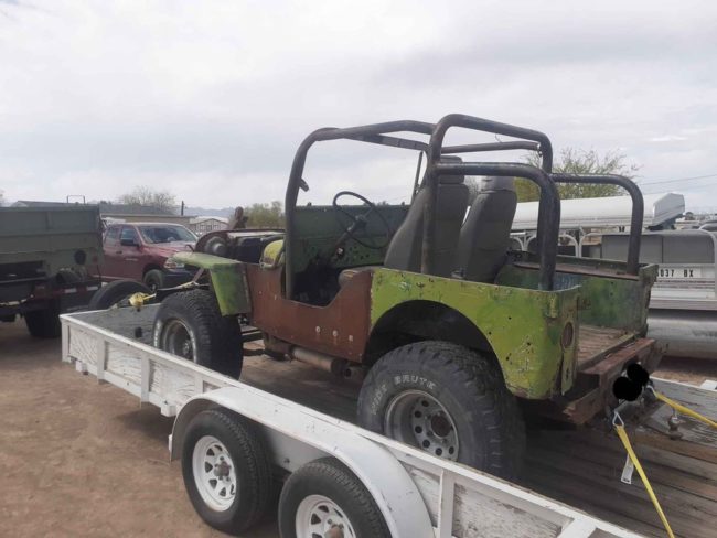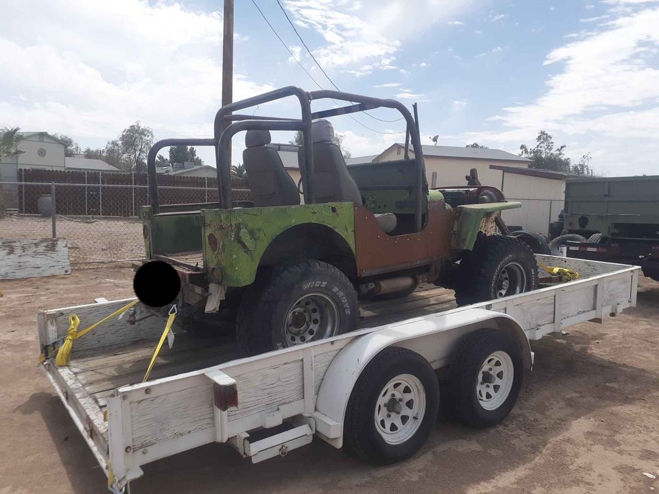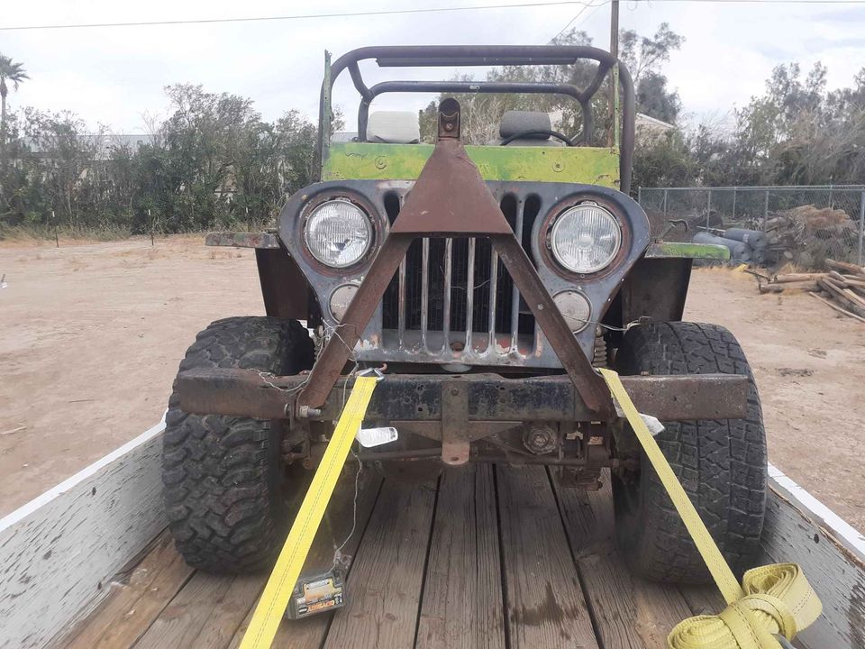 “(1956 Willys) Jeep has a dauntless v6 motor and comes with spare trans with transfer case front and rear differentials. I have a clear title in hand Asking $1500. (Jeep does not run will need to bring a trailer)”