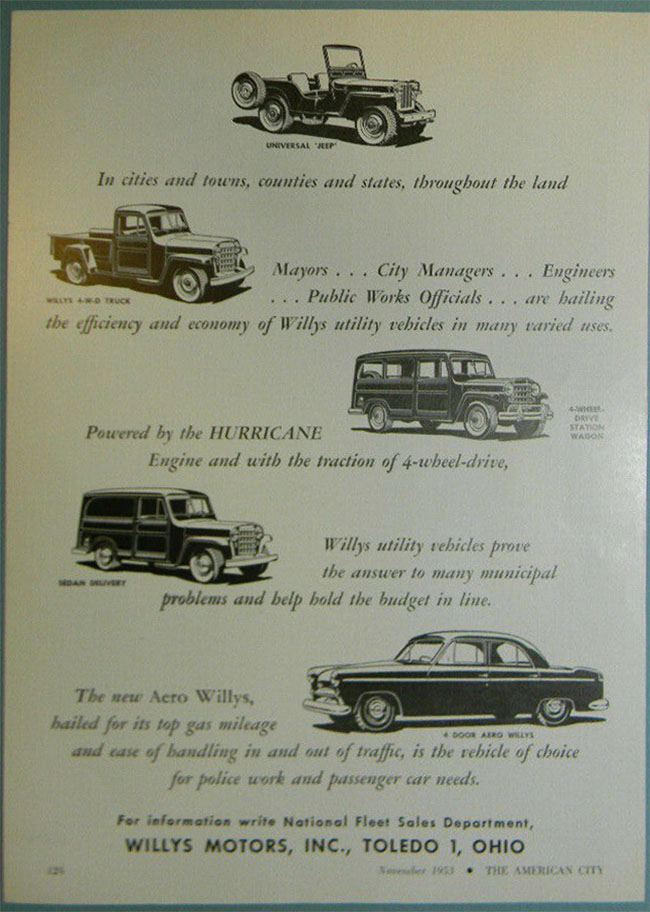 “953 WILLYS MOTORS UTILITY VEHICLES SALES ART AD