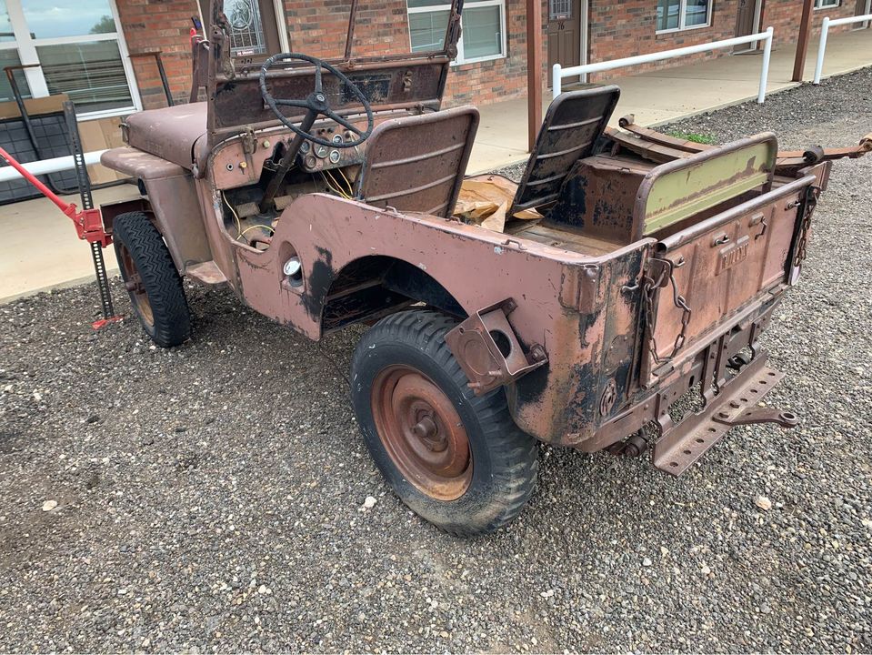 “1946 CJ2A no title bill of sale only Has an older studebaker motor in it. It was running. PO had an electric fuel pump wired in. I took the carb off to rebuild it. never got around to it. I have a new mechanical fuel pump that needs to be installed. I have a leaf spring kit that I’m in the middle of putting on it. If you want the originals you can have them. I still have them. Has a new gas tank and a couple of other new parts the the PO gave me. Spark plug wires,radiator fan and a couple others Things. It will need a winch to load as it is right now.”