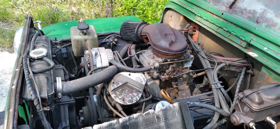 “Nice old Custom Willys Jeep with a Buick V-6 engine and Auto tranny with Hi and Low range a 4 wheel drive. It has a fiberglass tub in the rear with a new left front fender and new windsheild frame. Also has a custom roll bar as you can see. I have had the frame all restored and is in great shape. Also has custom front and rear bumper assemblies with tow hitches on the front and rear. Needs a little more work to make it an everyday driver. Have a Mass. Title for it.”