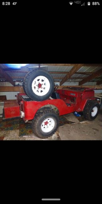 “1953 Willy’s jeep, starts, runs , drives Needs a good restoration or drive as is Great tires, no trades,no free rides Located in auburn, mi.”