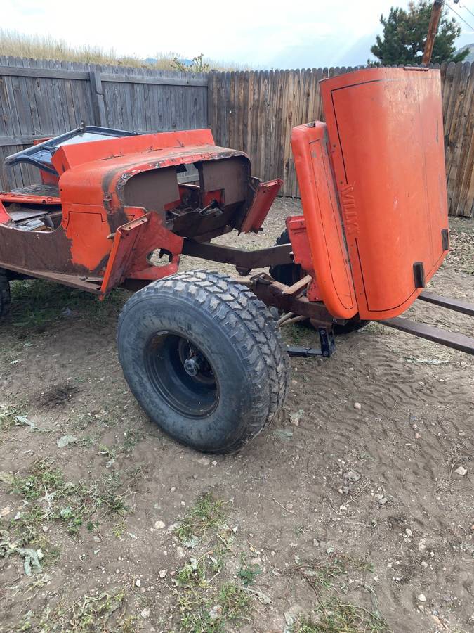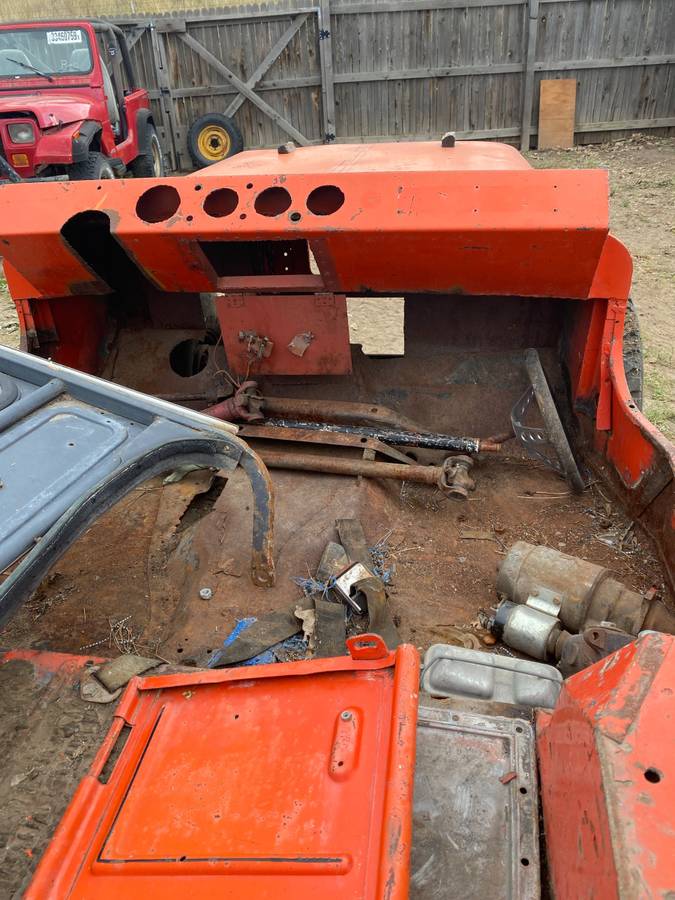 Would make a great off road crawler. Was set up for a small block Chevy. One piece lift off front end. Custom dash.