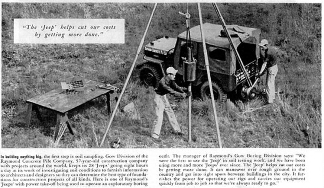 UPDATE: Thanks to Claus and his brilliant memory, we have another example of a Capstan winch on the back of a Raymond Concrete Jeep. In this case, I had posted it back in 2010.  Raymond Concrete was formed in 1897, but went bankrupt in 1989.