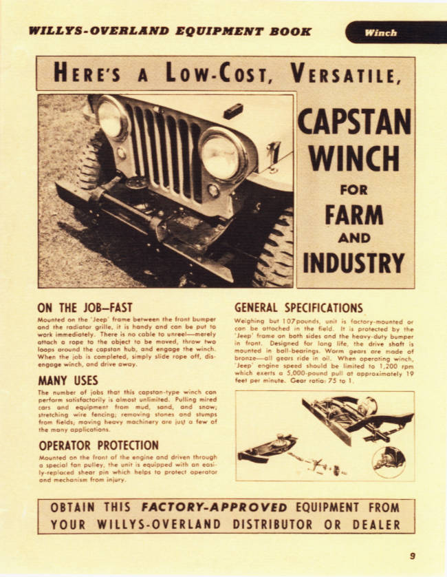 Capstan could have been used to drag game to the Jeep but rotation speed and orientation would not have been very useful.