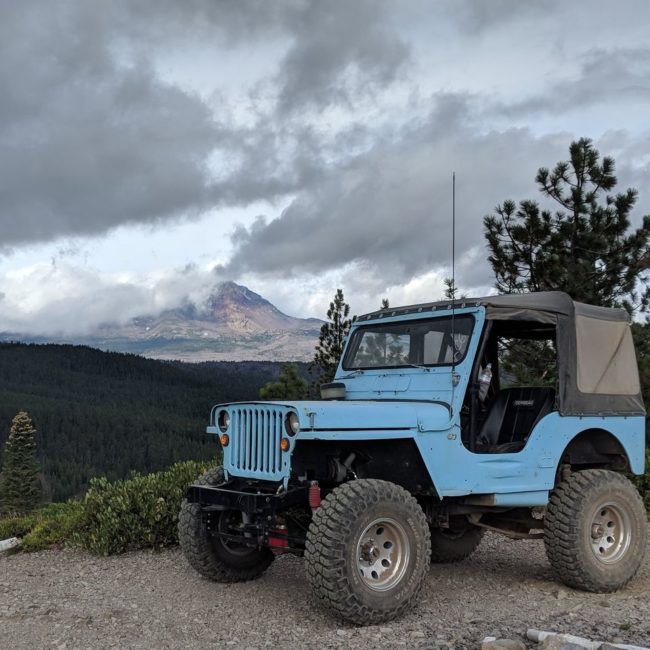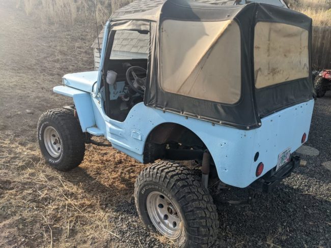 “Frame is 1942 MB Tub is a 42 GPW Running Gear Ford 2.3 turbo SVO motor, LA2 conversion, smaller turbo that starts to build boost around 1800 rpm T90C transmission (higher 3.34:1 first gear) Dana 20 Twin Stick w/ Terralow 3.15’s Currie Dana 44 front axle with Detroit locker w/disk brakes 4.56 gears Dana 44 full float rear with Detroit locker 4.56 gears Holbrook specialties long leaf springs front/rear for extra articulation Aluminum radiator Corbeau Seats Iditit steering column an custom leather wheel Wilwood master cylinder / brake upgrade Tom Woods Front/Rear Driveshafts”