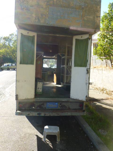 HAHAHA — INSIDE IT SAYS ” CABLE TV SERVICES ” — ITS A FIBER OPTIC SPLICING VAN ?? — I HAD TO BUILD ONE ONCE FOR CABLE TV — I TOOK A NEW WELLS CARGO TRAILER — OUTFITTED IT WITH A/C , FORMICA WORK TABLE , HONDA GENERATOR , CHAIRS , BINS , ETC — VOILA ~ !!