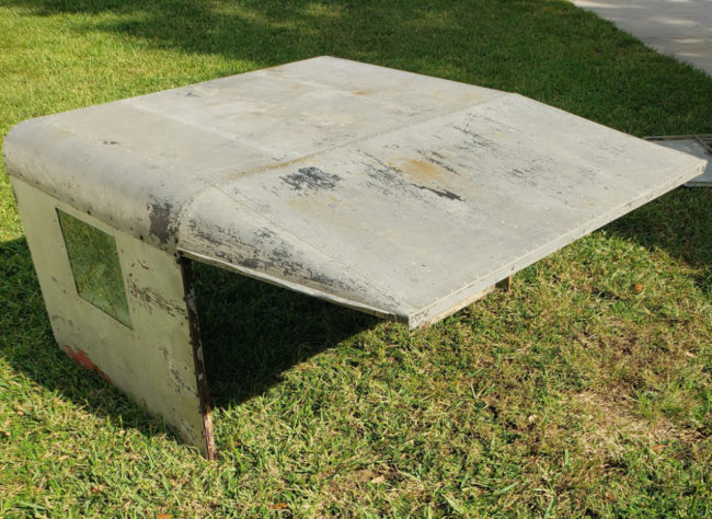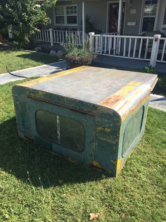 The odd thing about Porter & Reed tops is that there were a multitude of variations, from no small side windows, to small side windows to larger side windows, or from a single back door window to dual back windows, and from rear doors that opened up vertically, to a couple that opened sideways, to a set of barn doors (custom)? There may have been a change in the doors as well, as a couple tops have angled bends at the lower front edge rather than the standard vertical bend where the body bends. What was factory and what was customized is likely lost to time ….