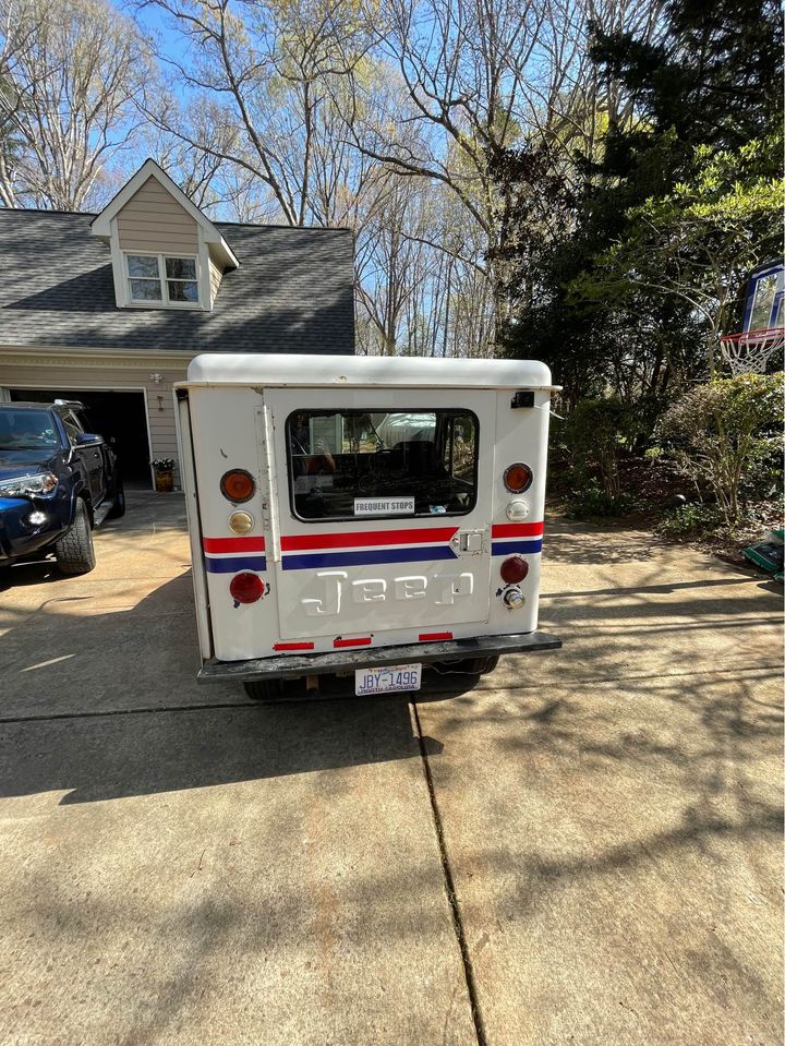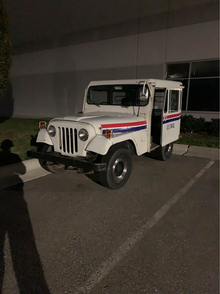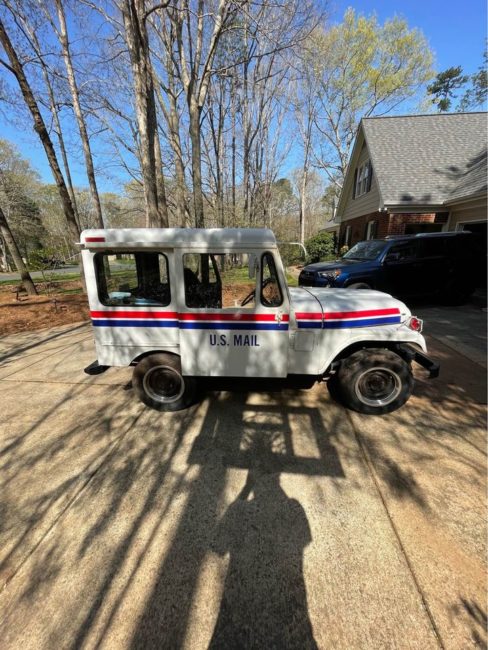 “This is my vintage DJ5 mail jeep, I am selling it with a brand new battery, brand new suspension all the way around, new tires and everything on it like headlights wheels with the sweet original chrome hub caps, and unkillable inline 5 it is automatic and mileage is unknown but it starts right up and drives great for its age. It does not have power steering but it’s so small it’s not very hard to turn you just have to get used to being on the right side. This one is in fantastic condition for what it is and it is easy to see project ideas from it or keep it original which is just as nice. All lights work and I bought it from a mailman who bought it from the us mail system.”