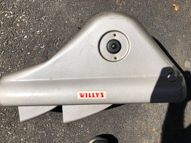 2 capstan winches with complete linkage and running gear and roller fairleads; 2 power takeoffs with intact drums; beautifully rebuilt engine still in its packing crate; engine block; 2 transmissions with levers; 4 transfer cases; 3 starter motors; 3 generators; 2 carburetors; 2 distributors; 4 cylinder heads; 5 Willys heaters, (one NOS, two restored with new cores);; 2 grills; 4 tailgates; 2 CJ-2A windshield frames; 1 CJ-3A windshield frame; driver-side front-seat frame; passenger-side front-seat frame; rear seat frame; 2 gas tanks;; 2 Sparton turn-signal switches; steering rods; steering-knuckle gasket set; bumpers; spare tire mount; several brake drums and brake shoes; several boxes filled with old and new miscellaneous jeep parts, including speedometers and many gauges, too numerous to list.”