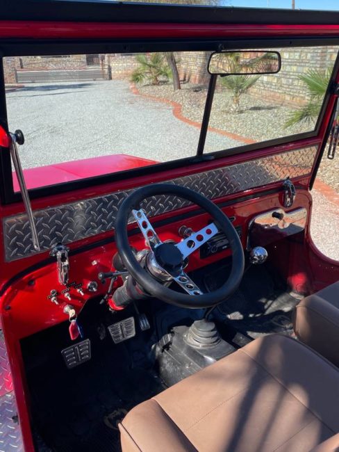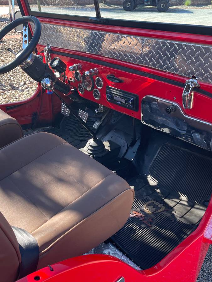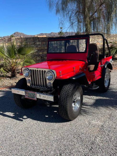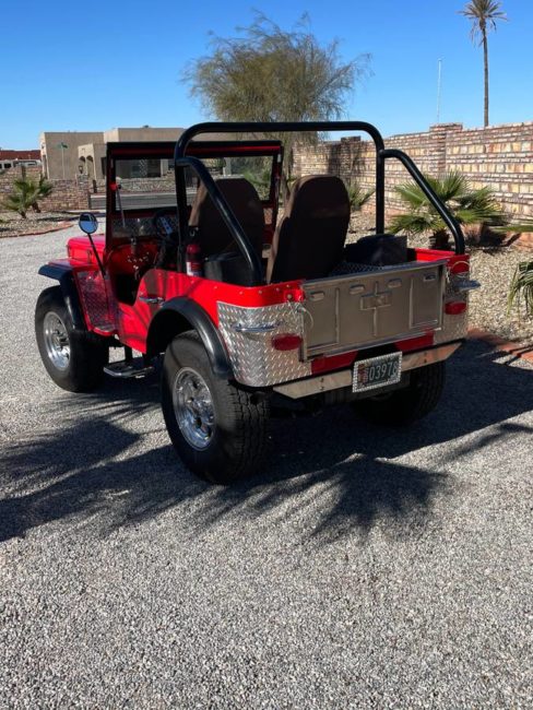 “Cj 2.. GM 3.8 v6..3 spd manual trans…stock running gear all rebuilt..power steering.all12 volt power..new wheels and tires.. new complete top..stereo..runs and drives amazing.. some extra parts..one of the nicest 45s anywhere.. no emails they will be ignored..if you see the ad it’s available..calls only.”
